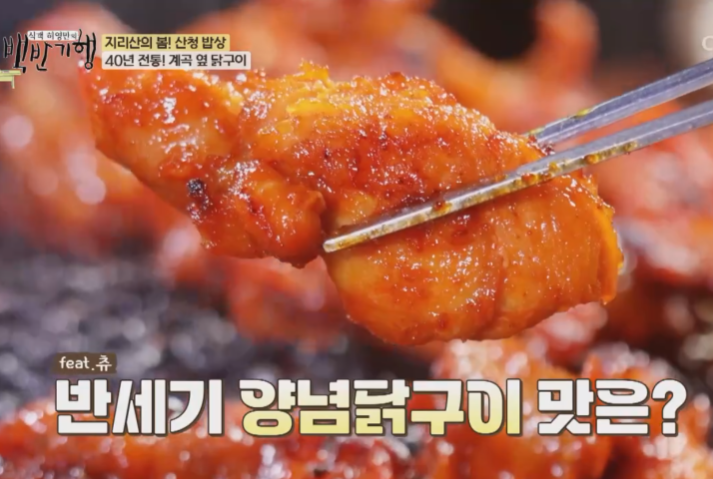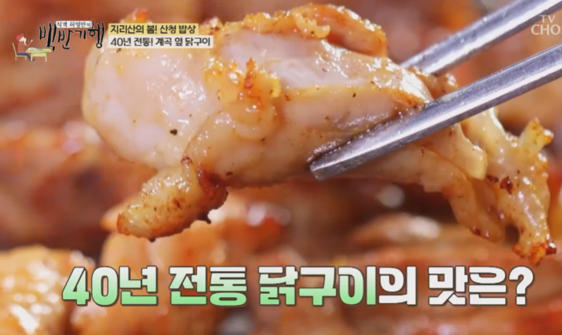 40년 동안 방송 출연은 처음입니다. 지리산 자락에서 맛보는 토종 닭구이로 백반기행 최초 공개 지리산 자락에서 맛보는 닭구이의 신세계 비밀병기 맛입니다.