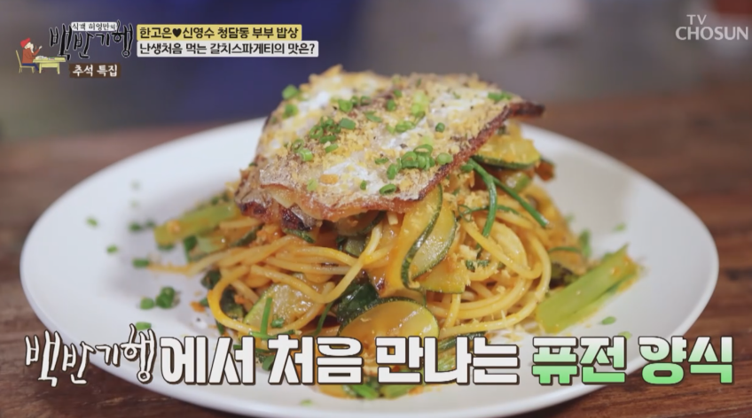 남편 신영수 씨는 홈쇼핑 시절 갈치 반장 MD로 일하며 갈치의 매력을 잘 알고 있다고 소개되었으며, 이번 식사를 통해 갈치의 다양한 변형이 한식과 양식의 조화를 이루는 것을 보였습니다. 식사 중 제공된 블러드 메리 칵테일과 갈치 스파게티는 음식의 국경을 넘는 맛의 조화를 보여주었습니다.