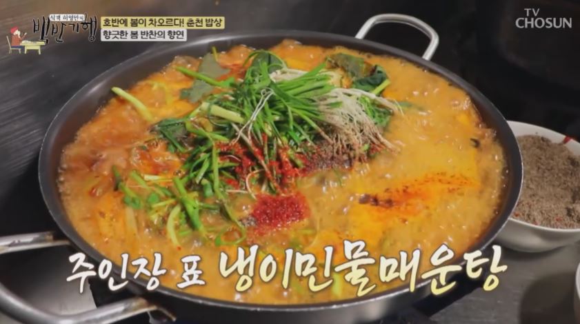 백반기행, 춘천댐 매운탕골 33년 전통 민물매운탕 맛집 향긋한 봄 반찬의 향연에서 냉이민물매운탕까지 소개합니다.