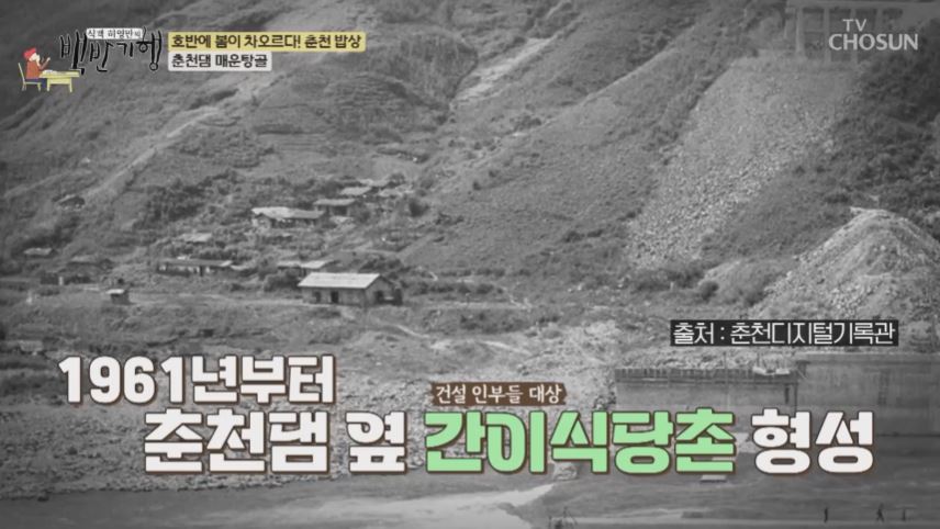 춘천댐 공사판 한밥집들이 국밥처럼 팔던 매운탕이 유명세를 타며 이곳을 매운탕 꼴이라 부른 지 60년이 넘었답니다.