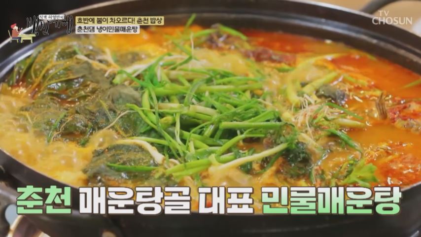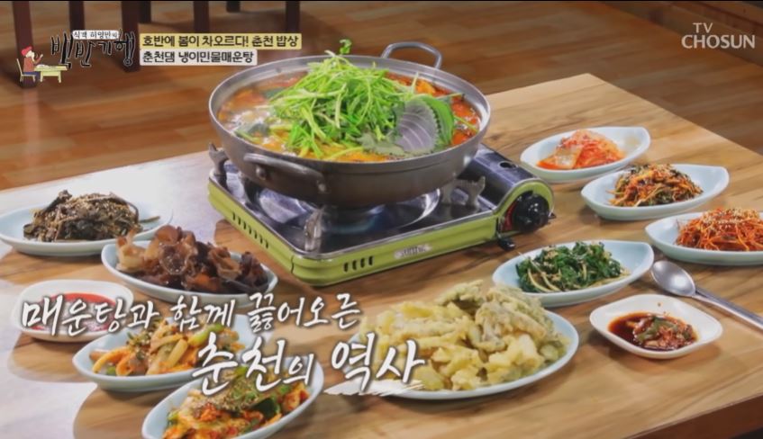 백반기행, 춘천댐 매운탕골 33년 전통 민물매운탕 맛집 향긋한 봄 반찬의 향연에서 냉이민물매운탕까지 소개합니다.