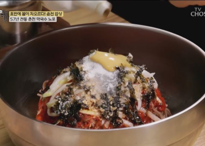 춘천 막국수는 물, 비빔 구분 없이 비빔이 기본이랍니다.
