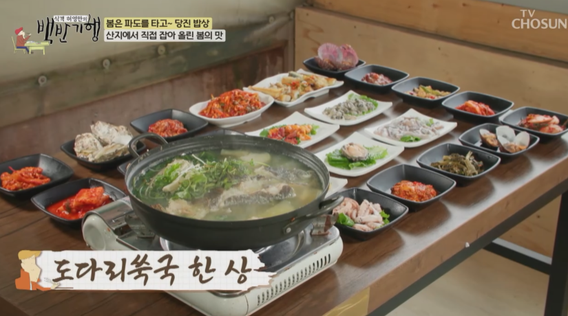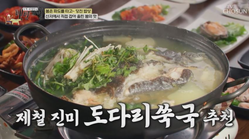 도다리 쑥국이 2인분에 6만원으로 어부 남편이 여러가지 반찬을 잡아주면 22가지이고 아니면 조금 줄어들수도 있다고 합니다.