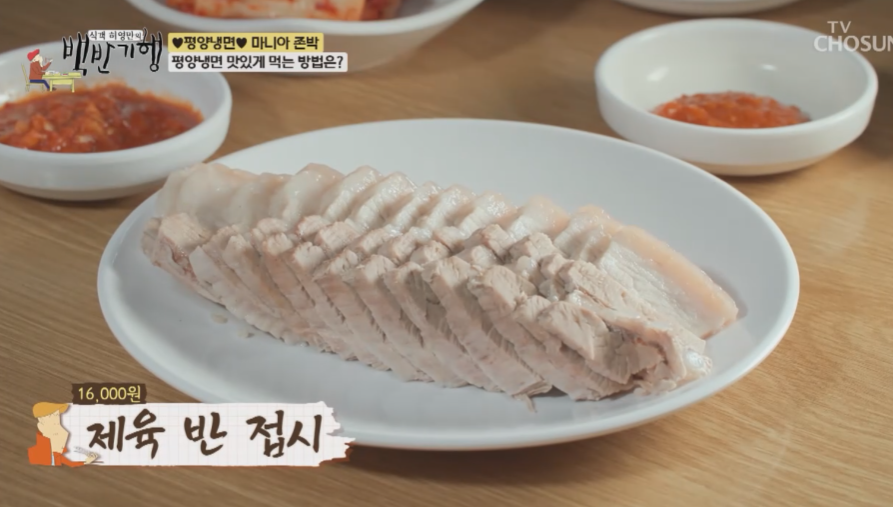 이곳의 또 다른 별미는 제육입니다. 제육은 따뜻하게 제공되며, 냉면과 함께 먹으면 고기의 부드러운 식감과 냉면의 시원함이 절묘하게 어우러집니다. 존박은 냉면과 제육을 각각 따로 먹는 것을 선호하는데, 이는 냉면 육수의 깨끗한 맛을 유지하려고 한답니다.