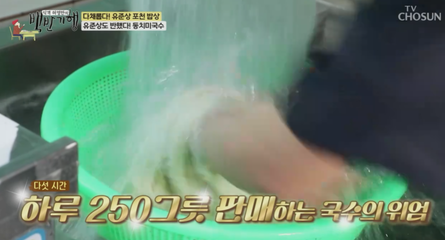 11시 영업을 시작해서 4시에 마치는 단 5시간 영업하는 하루 매출 200만 원 전국에서도 명성자자한 소문난 국숫집입니다. 시원하고 달큼한 맛 웃음이 절로 나오는 국수의 맛입니다.