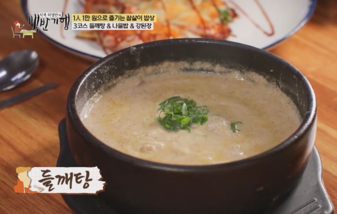 들깨탕은 부드러운 들깨와 다양한 나물로 만든 고소하고 건강한 국물 요리입니다. 묵밥상과 함께 곁들여 먹으면 그 맛이 일품입니다. 나물밥은 각종 산나물과 도토리묵을 넣고 비벼 먹는 형태로, 자연 그대로의 맛을 느낄 수 있습니다.