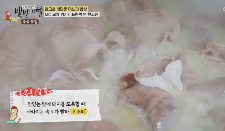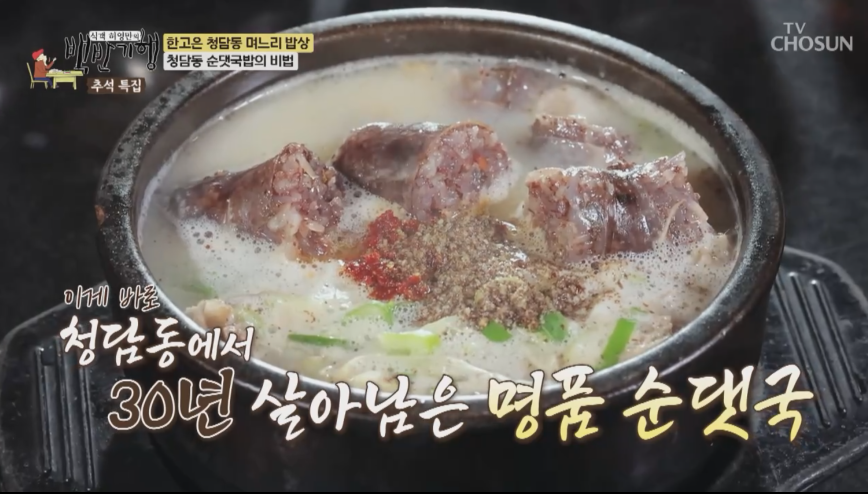 한고은은 이곳 순대와 순댓국의 맛에 감탄하며, 청담동이라는 세련된 지역에서 서민적인 음식이 살아남은 비결을 알아갑니다. 이 가게는 매일 천인분의 순대국을 만들며, 수십 년간 이어온 전통과 노하우를 자랑합니다. 주인장은 돼지머리를 삶아 국물을 내는 비법을 공유하며, 30년간 유지해온 이 맛의 비결을 설명합니다.