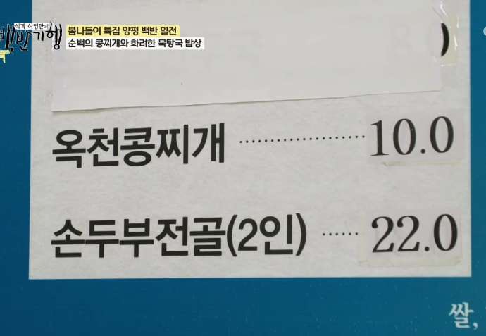 허영만의 백반기행 봄나들이 특집 양평 백반 열전 순백의 콩찌개와 화려한 묵탕국 밥상 눈길 사로잡는 독특한 외관 특별한 기운이 느껴지는 맛집을 소개합니다.