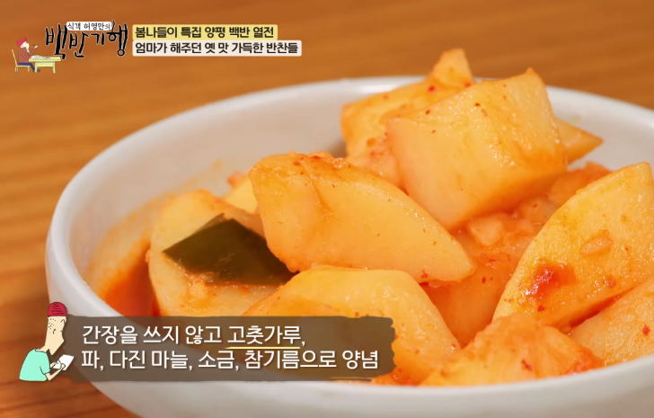깨끗하고 깔끔한 무나물도 오묘한 맛이 납니다. 음식에 과한 양념을 안 한게 특징입니다.