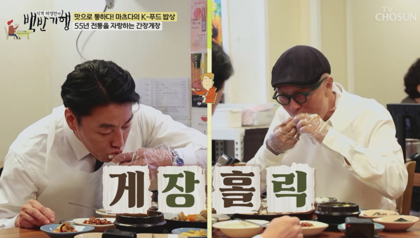 이번 '백반기행'에서는 서울에서 오랜 전통을 지닌 음식들을 소개하며 마츠다가 '토종 한국 입맛'을 가지고 있는지 직접 확인해보는 재미도 있었습니다. 두 사람은 서울의 한 맛집에서 55년째 내려오는 비법 간장으로 만든 간장게장과 기름기를 쏙 뺀 게일백반 한 상을 함께 즐겼습니다.