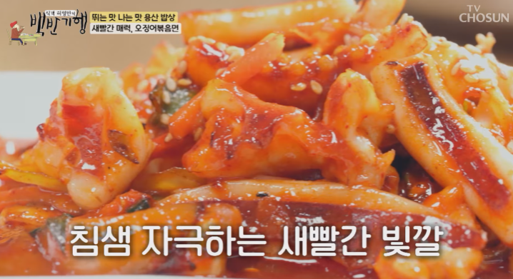 매콤한 양념에 쫄깃한 오징어와 면발의 조화!