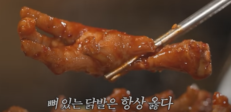 닭발을 먹을 때는 매운 양념이 잘 스며들도록 최대한 발라야 하며 캡사이신의 매운맛은 계속 먹고 싶게 만드는 매력이 있습니다.
