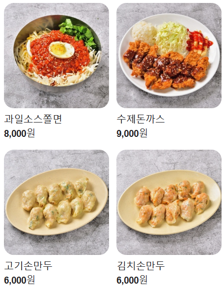 백대표는 쫄면과 고기 만두를 주문하고 옆테이블은 김치만두와 돈까스를 주문해서 먹습니다.
