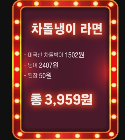 첫번째 존박의 차돌냉이 라면이 완성되었습니다.