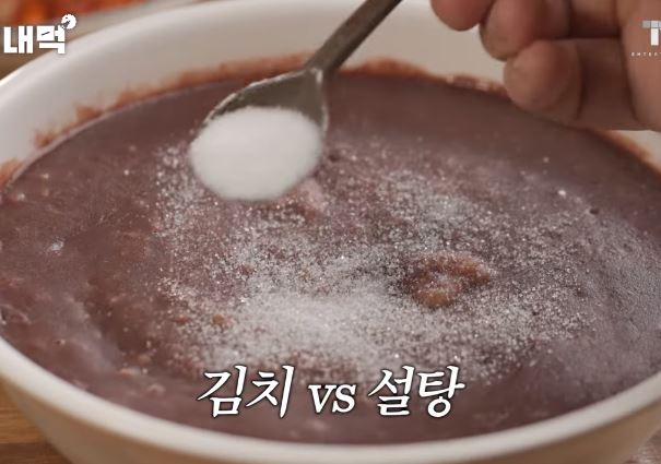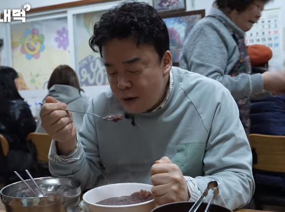 백대표는 팥죽을 먹을 때는 고민이라고 팥죽에 김치를 하난 올려서 먹을까 설탕을 넣어서 디저트 처럼 먹을까 고민이라고 합니다. 설탕을 별로 안좋아 한다면서 팥죽에 설탕을 듬뿍 뿌려서 맛있게 먹습니다.