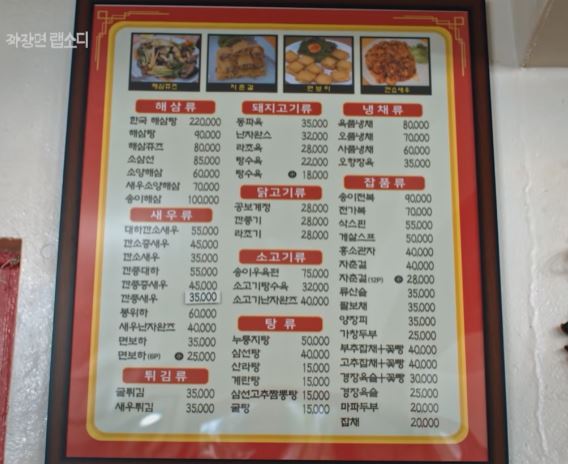- 대표메뉴 / 물짜장9,000원 / 중화정식20,000원 / 육미짜장 8,000원