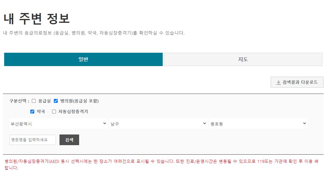 병의원·약국 비상진료 검색(휴일, 연휴, 명절 응급의료센터)