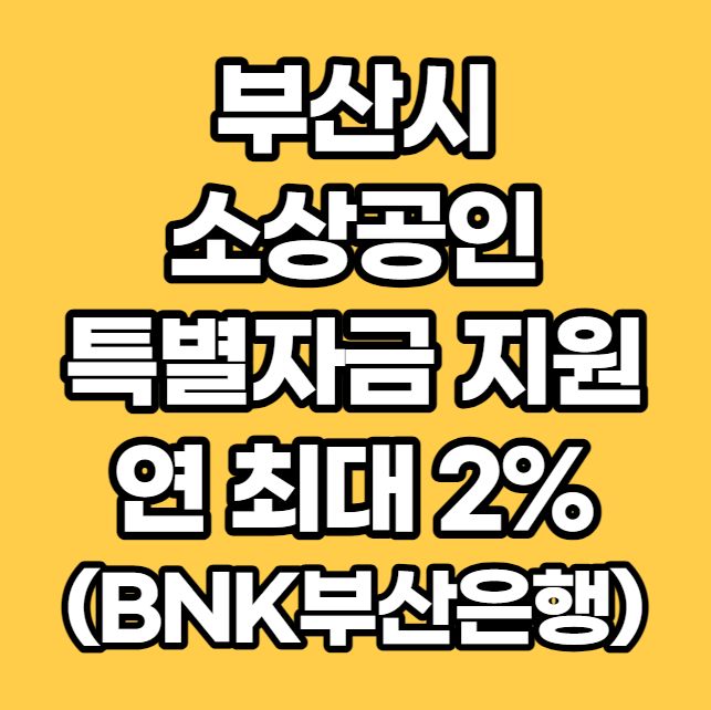 부산시가 소상공인의 금융부담 경감을 위해 BNK부산은행, 부산신용보증재단이 함께 소상공인 특별자금 연 최대 2% 대출이자로 지원합니다.