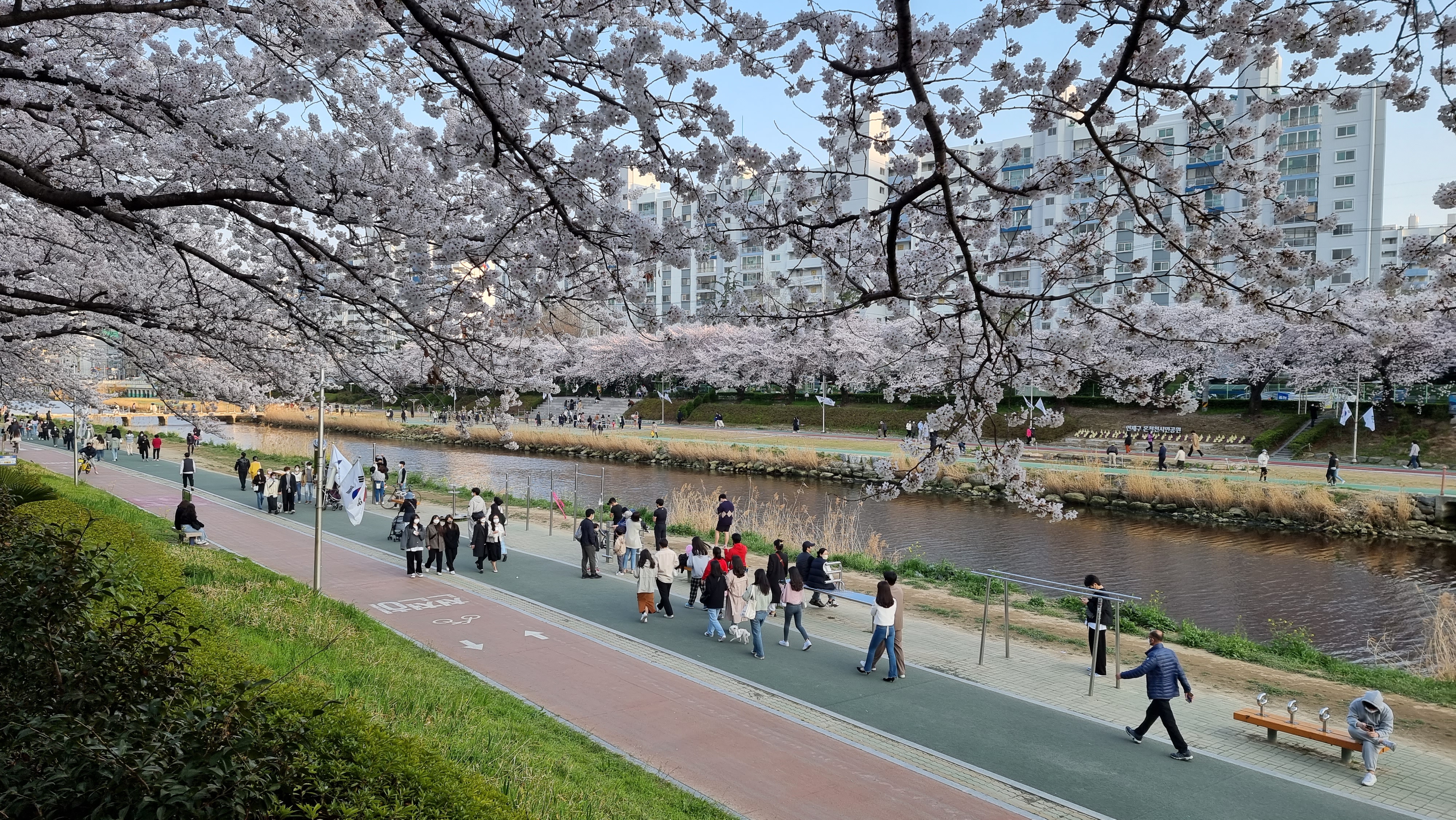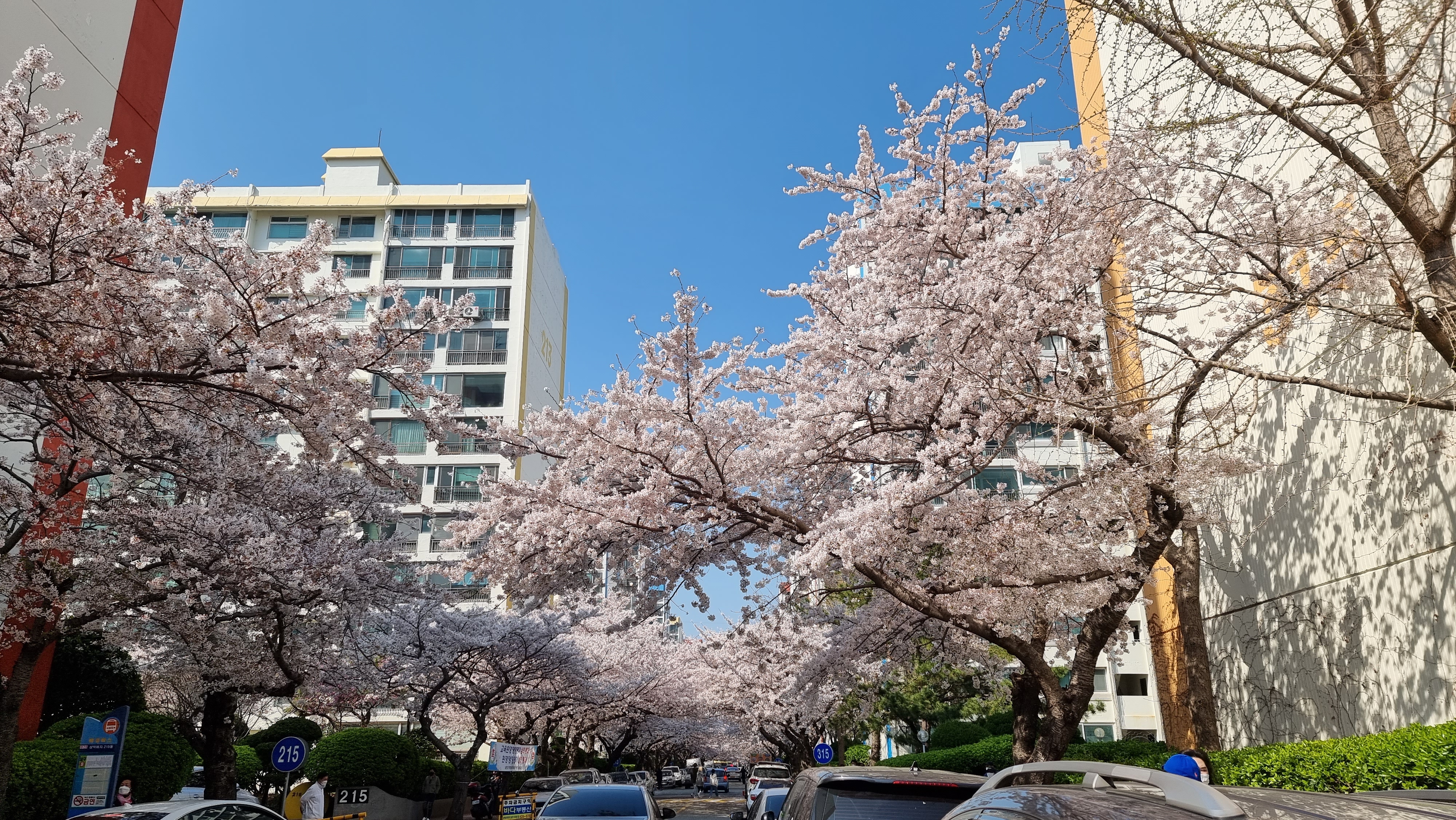 남천동은 사진에 보시는 것과 같이 아파트 단지에 벚꽃들이 있어서