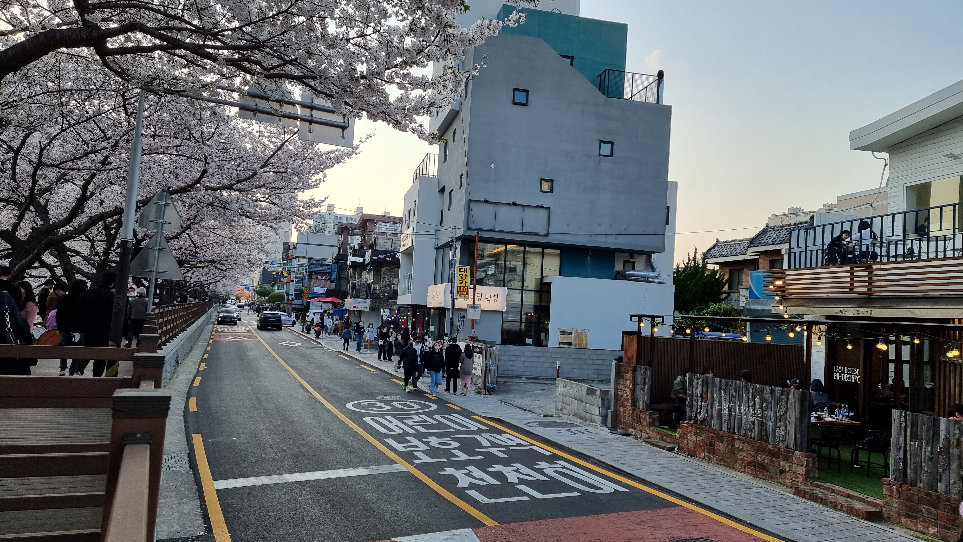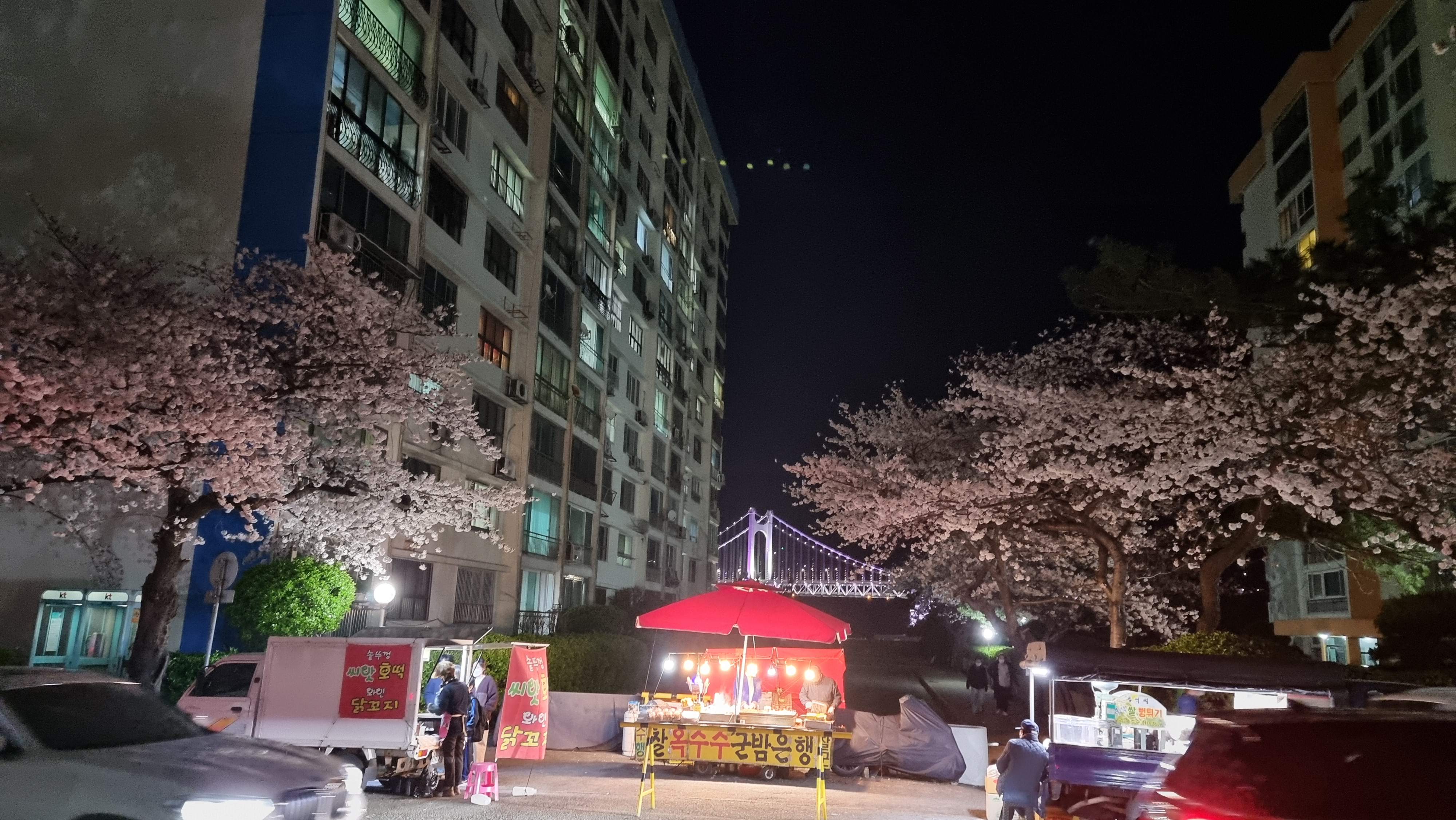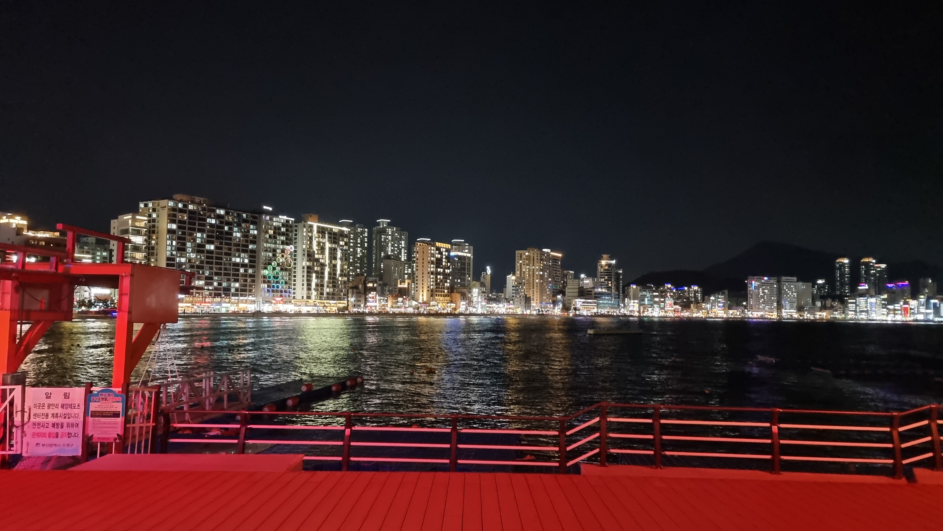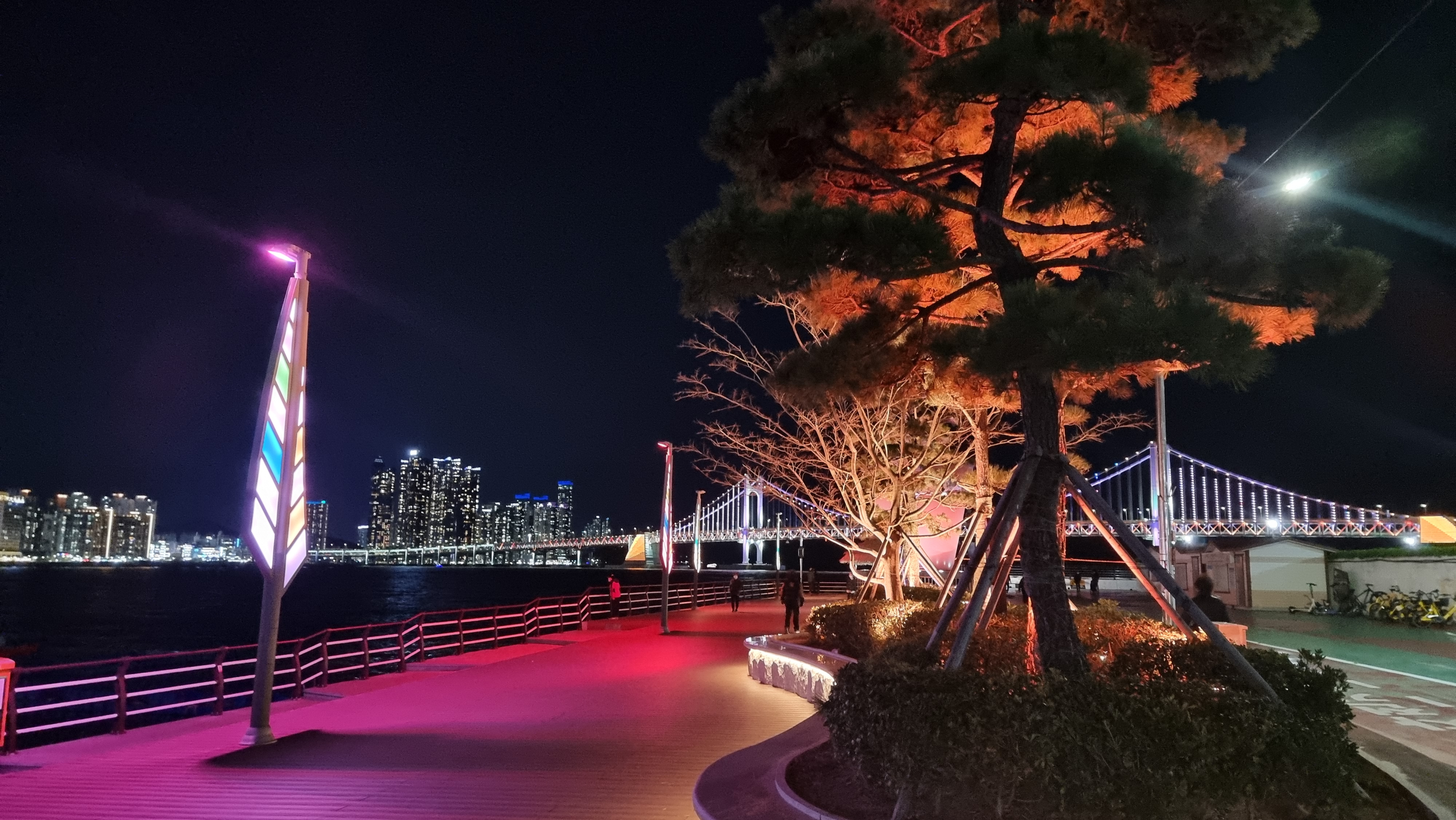 벚꽃 피는 시즌에는 꽃들도 예쁘고 조명으로 데크와 바다도 더 아름답네요.