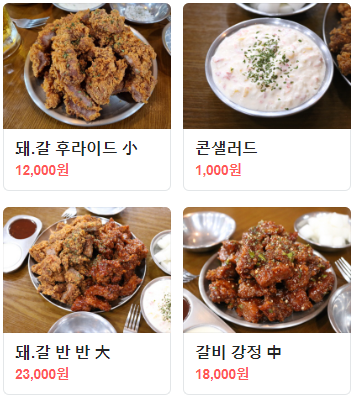 • 돼지갈비 후라이드로 돈까스와 비슷하다고 생각하시면 다른 맛이고 튀겨서 겉은 바삭하고 속은 부드러우며 큰 기대를 안하시면 맛있고 너무 많이 기대하고 가시면 한번으로 만족할 만한 맛평가입니다.