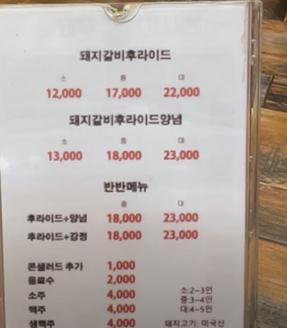 - 돼지갈비 후라이드로 돈까스와 비슷하다고 생각하시면 다른 맛이고 튀겨서 겉은 바삭하고 속은 부드러우며 큰 기대를 안하시면 맛있고 너무 많이 기대하고 가시면 한번으로 만족할 만한 맛평가입니다.