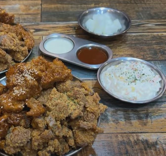 - 함께 나오는 매콤하고 달당한 양념에 찍어서 드시고 콘샐러드는 추가 하셔서 드세요! 밥을 주문하시면 햇반이 데워서 나옵니다.