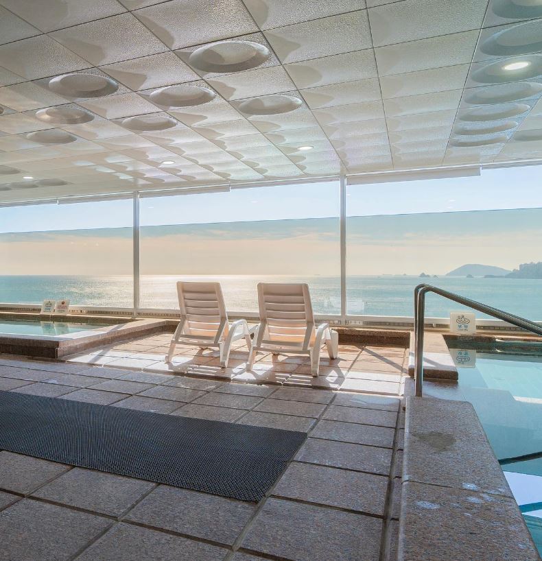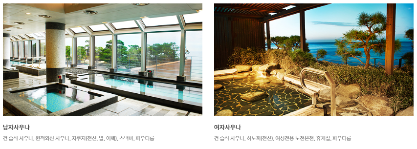 2층은 여자 사우나실이 있는 곳입니다. 노천탕 포함 6개의 탕에서 사우나 하실 수 있구요! 당연히 바다를 바라볼 수 있는 오션뷰에요!