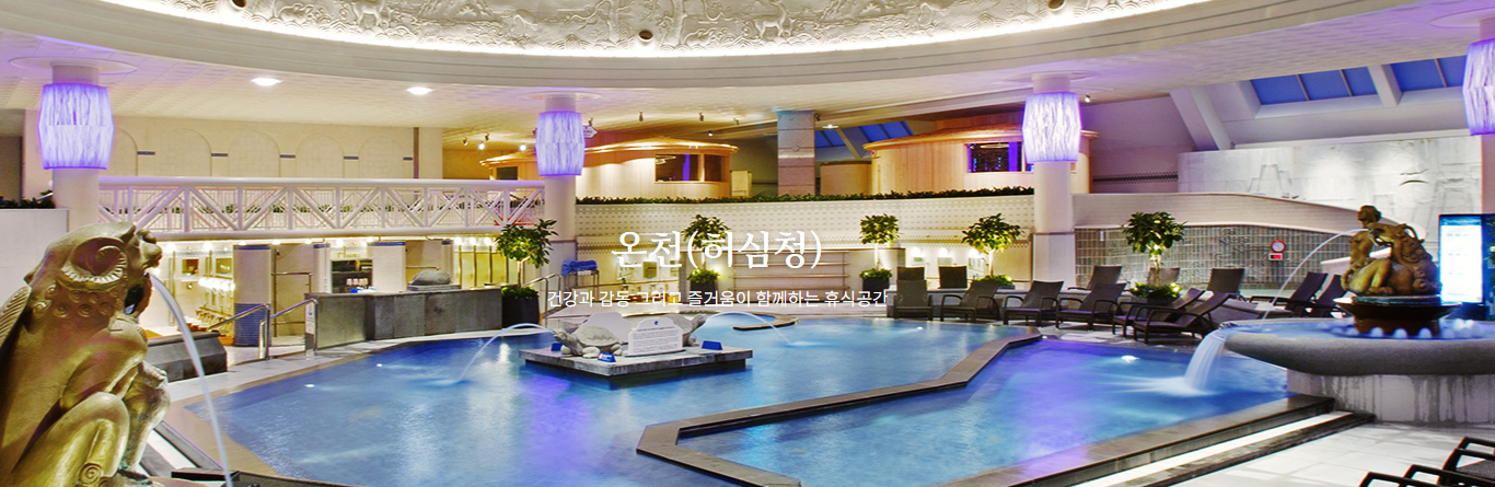동래온천은 수 백 년 동안 사용해도 고갈되지 않는 풍부한 수량과 양질의 온천수를 보유하고 있으며, 허심청에는 100%자체 개발한 기공에서 뿜어 올린 천연 온천수만을 공급하고 있습니다.