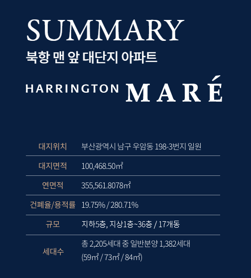 부산에서는 세계적인 건축 디자인 그룹 칼리슨 RTKL의 특화설계를 적용한 '해링턴 마레'가 북항을 대표할 랜드마크 디자인을 더해 수요자들의 많은 관심을 받고 있습니다.