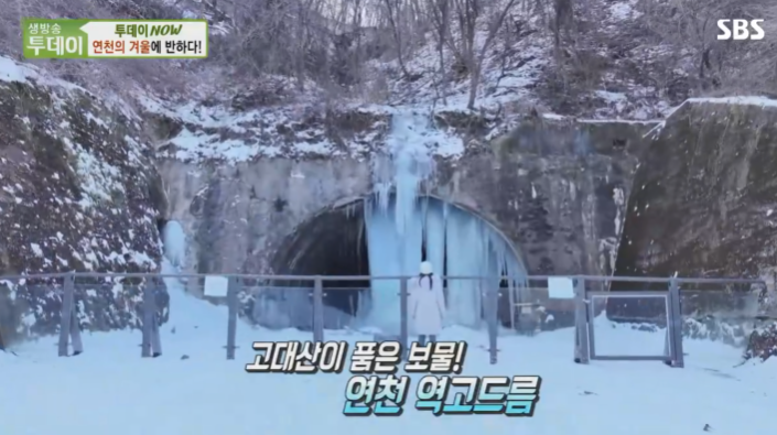 연천의 겨울을 대표하는 자연 현상인 역고드름은 경기도 연천군 신서면 대광리 고대산 자락의 폐터널에서 볼 수 있습니다