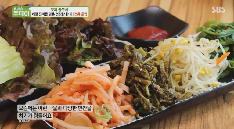 - 나물과 보리밥을 넉넉히 담고