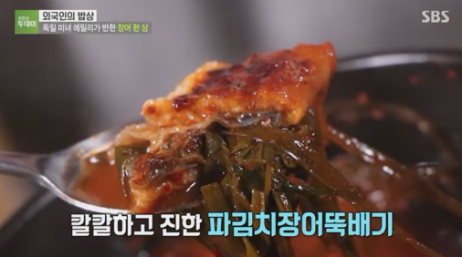 그녀는 “장어와 파김치가 이렇게 잘 어울릴 줄 몰랐다”며 깜짝 놀라는 반응을 보였어요.