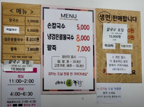 따뜻한 팥죽과 칼국수 속에 행복까지 담아 파는 정감 넘치는 음식입니다.