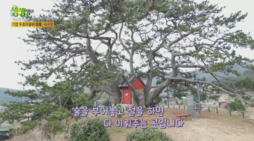 해송과 서낭당, 해송은 처음 6그루 였다가 태풍에 한그루가 소실되어 현재 5그루 입니다. ▼