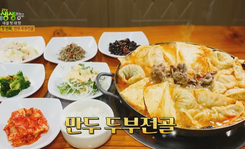 경기도 오산시의 한 식당 맛대 맛대결을 펼칠 첫 번째 메뉴는 따로 먹어도 맛이지만 함께 먹으면 더 맛있다는 재료들이 한자리에 총출동 만두가 몇 개가 보글보글 부드러운 두부와 쫄깃한 육즙, 좔좔 흐르는 고기만두