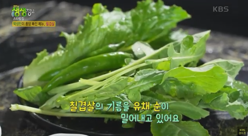 칠겹살+유채순+김치: 칠겹살의 고소함, 김치의 감칠맛, 유채순의 상큼함이 어우러져 최고의 조합을 자랑합니다.