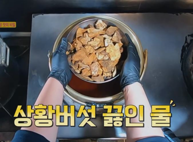 해물탕은 육수가 중요한데 그냥 물로 하는 것이 아닌 상황버섯으로 국물 맛을 냅니다.