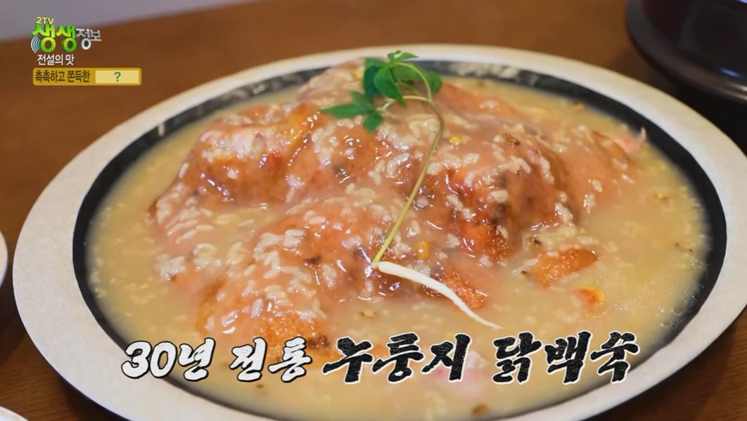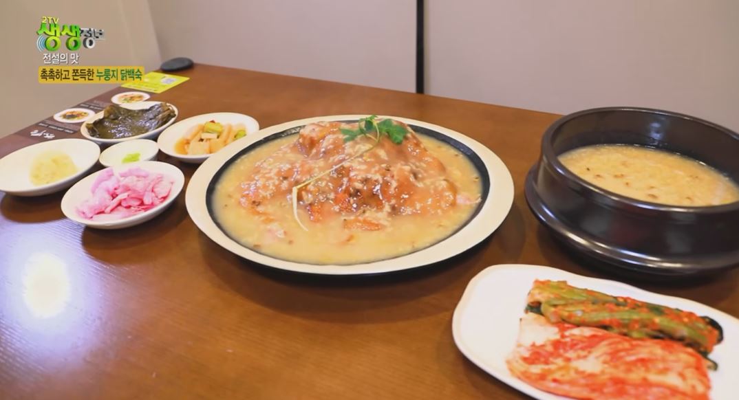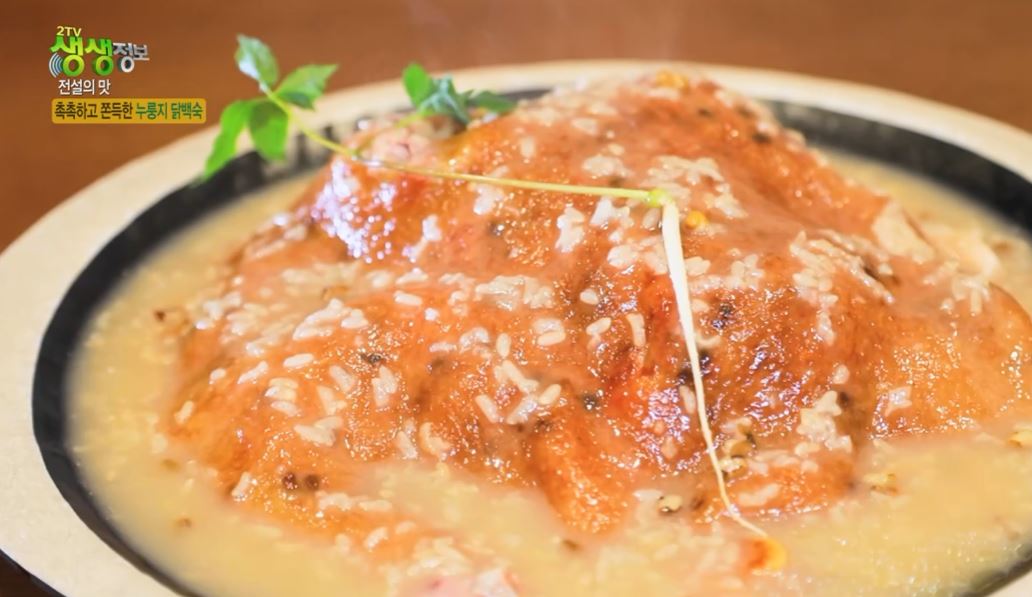 촉촉하고 쫄깃쫄깃함 자랑하는 누룽지와 부드러운 닭백숙의 만남