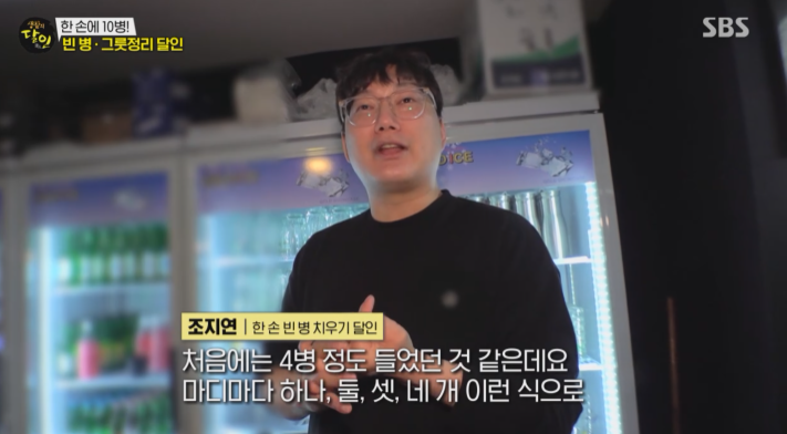 ‘생활의 달인’ 방송에서 각종 주방용품을 마치 예술 작품처럼 정리하는 모습이 공개되었습니다. 룸카페 주점의 ‘빈 병·그릇 정리 달인’을 소개합니다.