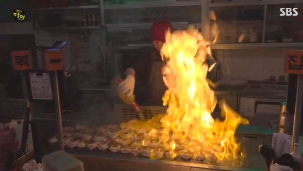 볶는집의 또 다른 매력은 화려한 불쇼입니다. 커다란 철판 위에서 갑오징어, 달걀 등을 다량으로 풀어 요리하는 모습은 그야말로 장관입니다. 이는 단순한 요리를 넘어 하나의 공연으로, 고객들에게 시각적인 즐거움까지 선사합니다.