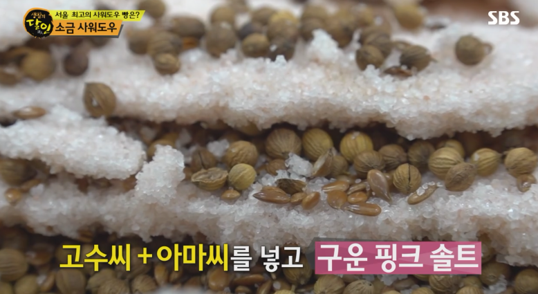 소금 사워도우는 특별한 소금을 사용하여 맛과 발효 과정을 조절하는 것이 특징입니다. 달인은 사워도우의 맛을 극대화하기 위해 히말라야 핑크 솔트와 고수 씨앗, 아마씨를 넣어 특별한 풍미를 더합니다. 이 소금은 쓴맛이 거의 없으며, 반죽의 발효 속도를 적절히 조절해 빵의 탄력성과 균형을 잡아줍니다. 단순한 재료로 만들어지지만 소금의 선택이 빵의 전체 맛과 질감을 결정짓는 중요한 요소입니다.