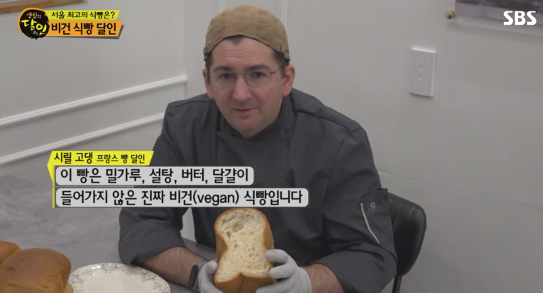 고민 끝에 왼손을 뻗어 하나의 식빵을 택한 심사위원 다른 식빵보다 기공이 좀 더 많은 식빵 바로 한순천 달인이 만든 비건 식당이 선정됐습니다.