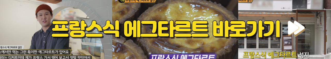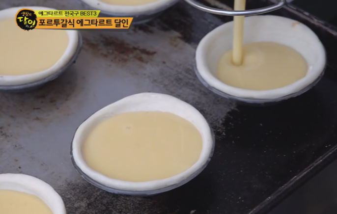 언뜻 달걀찜처럼 보이지만 바닐라 향이 싹 도는 에그타르트 먹었을 때 약간 부드러운 약간 푸딩 같은 느낌 포르투갈식은 커스터처럼 약간 크리미한 느낌이 이제 장점이고 유럽은 나라와 나라가 가깝다 보니 프랑스 방식의 에그타르트 또한 있었습니다. 생활의 달인 에그타르트 전국구 BEST3를 소개합니다.