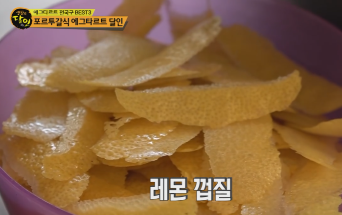 달인이 만드는 포르투갈 타르트의 가장 큰 특징, 두 가지 달걀은 흰자 빼고 오로지 노른자만 사용한다는 것이고, 속이 푸딩처럼 탱글탱글하기보다는 크림처럼 찐득찐득하면서 바삭한 파이와 조화롭다는 것입니다.