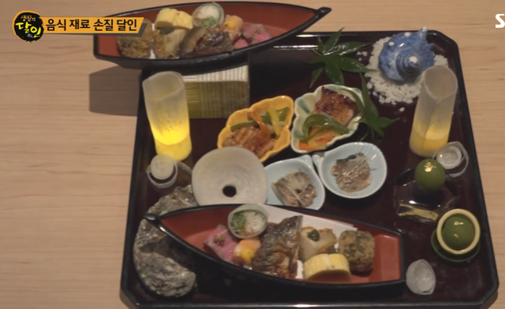 저녁 한 타임만 장사하는데 손질 재료만 무려 사십 가지 일곱 시간 이상을 식재료를 썰고 자르고 모양 내는 데 투자한다는 달인 자신의 정성을 느끼며 감동받는 손님의 얼굴을 떠올리면 힘들지 않다고 합니다.