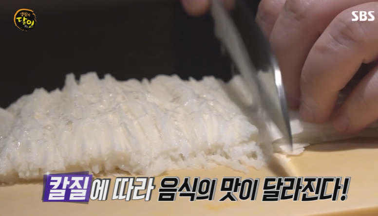 칼질에 따라서 맛도 변하고요. 식감도 변하고 모양새도 많이 변하니까.