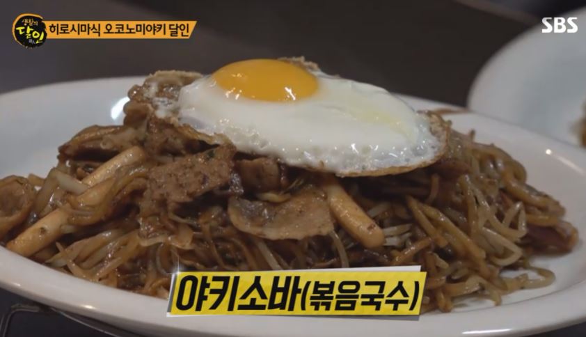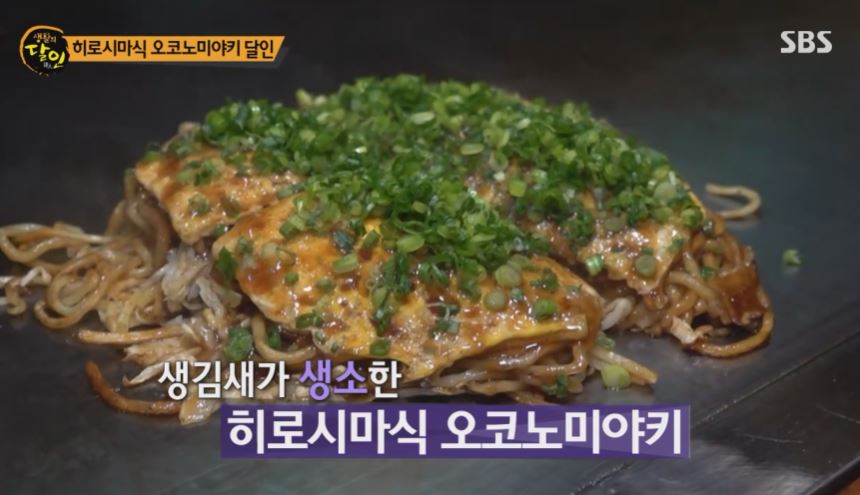 달인의 히로시마식은 불에 달궈진 철판 위에 밀정병, 반죽을 얇게 펴 그 위에 양배추, 파, 튀김, 숙주, 무기 등 각종 재료를 칭칭 올려서 구워주는데요.