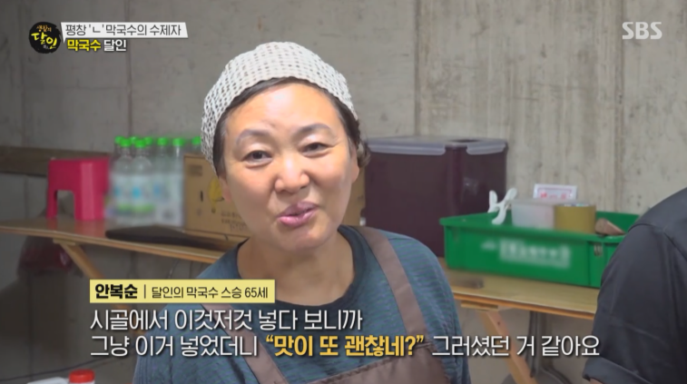 달인은 막국수를 고등학교 친구의 어머니에게 배웠습니다.