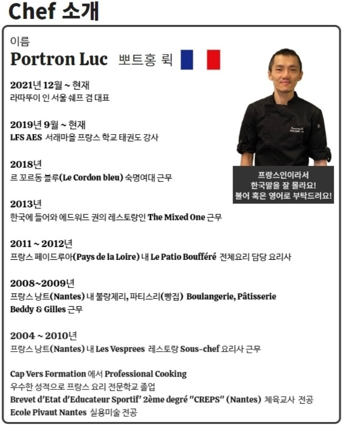 이 프랑스 가정식 식당은 오랜 기간 프랑스에서 요리 수업을 받고, 프랑스 유명 레스토랑에서 경력을 쌓은 주인장이 한국에 와서 연 곳입니다. 식당은 마치 프랑스 친구가 집에 초대해 음식을 대접하는 듯한 따뜻한 분위기를 연출하며, 주인장의 요리 실력과 열정이 담긴 요리들은 손님들에게 큰 만족을 안겨줍니다.
